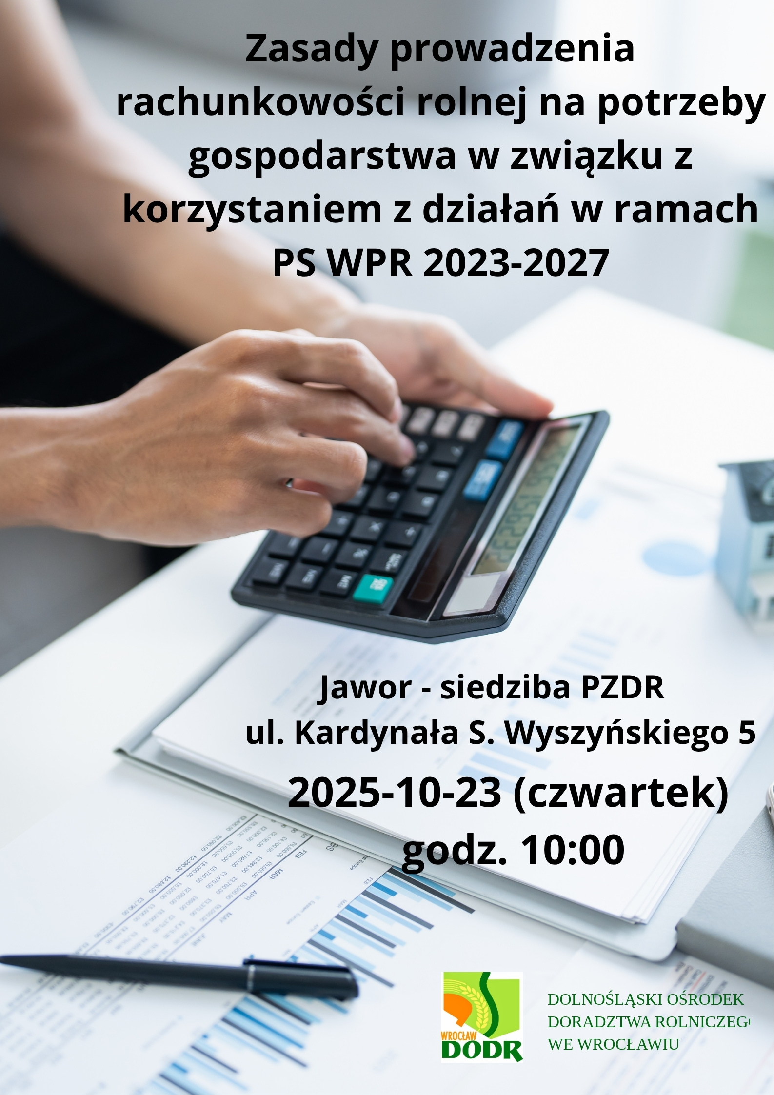 Zapraszamy na szkolenie dot. zasad prowadzenia rachunkowości rolnej na potrzeby gospodarstwa w związku z korzystaniem działań w ramach PS WPR 2023 - 2027.