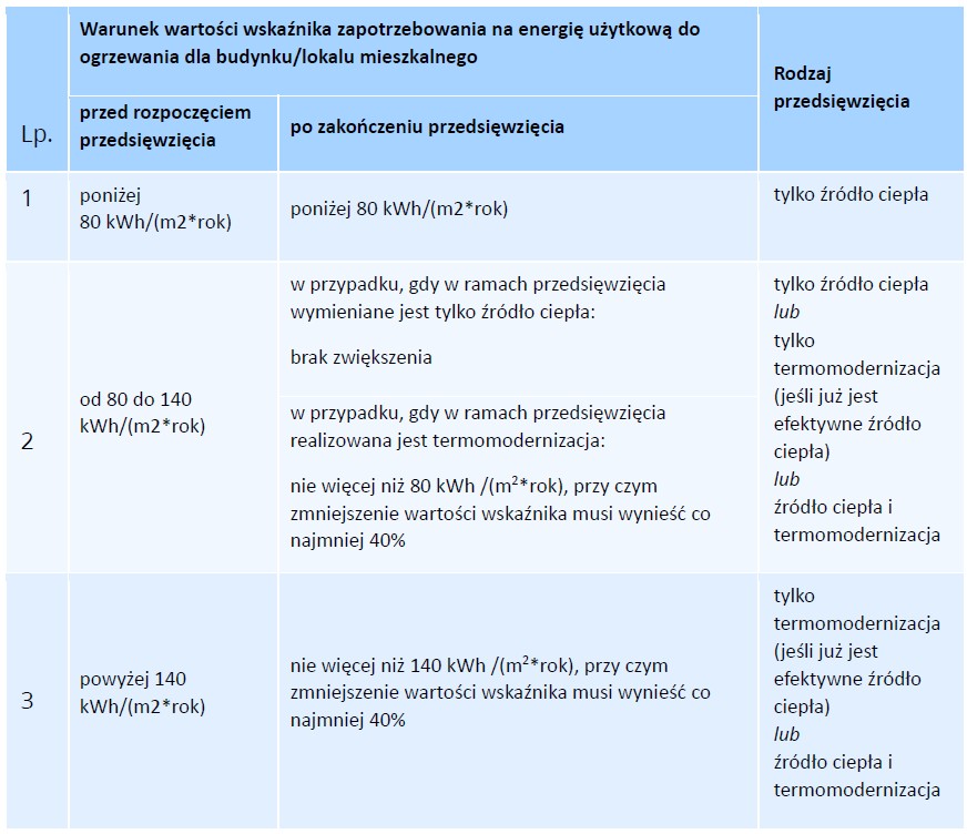 - trzeba pamiętać, że po realizacji inwestycji w budynku nie może być użytkowane źródło ciepła niższej klasy niż 5.